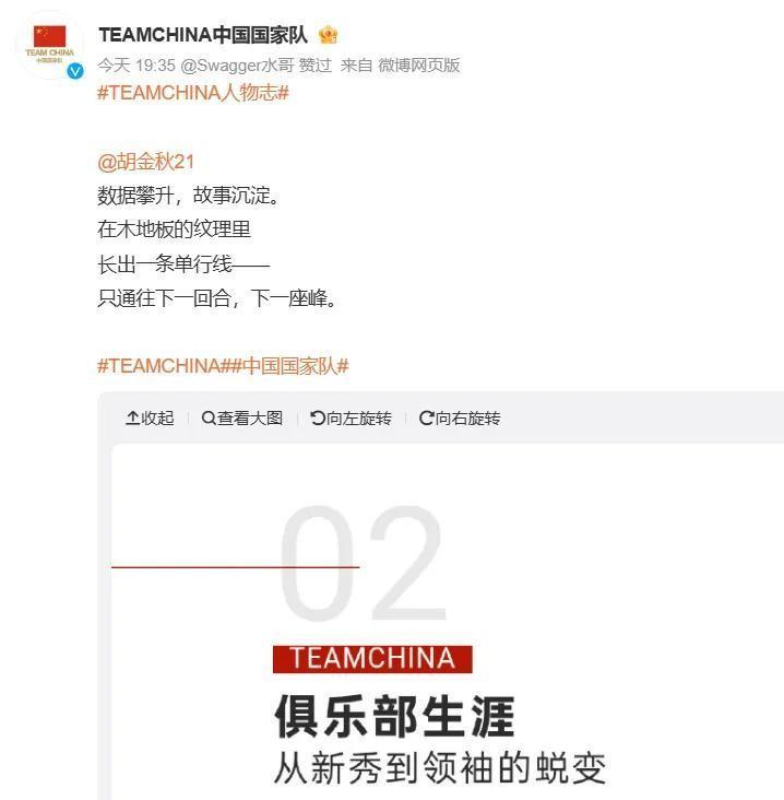 这次亚洲杯刚结束,胡金秋就发文表示为了胸前的CHINA拼尽全力,对他们来说永远都值得。