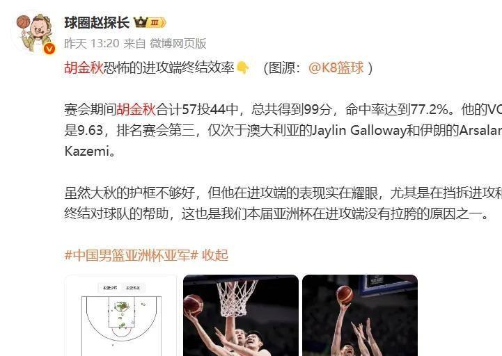 然而奇迹都是有人创造出来了,所以这次国家队点名称赞了胡金秋,这样高度的评价就连周琦之前也从未有过的。